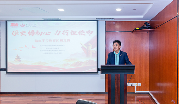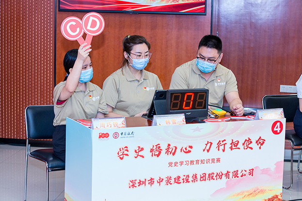 活動(dòng)伊始,中裝建設(shè)副總裁黎文崇同志在致辭中強(qiáng)調(diào),此次黨史競(jìng)賽活動(dòng),既是貫徹落實(shí)黨中央黨史學(xué)習(xí)教育決策部署的一次具體行動(dòng),也是中裝建設(shè)與中國(guó)銀行深圳中心區(qū)支行、深圳市物業(yè)專項(xiàng)維修資金管理中心、深圳市公證書(shū)等參賽單位構(gòu)建“黨建同心圓”的一次嘗試,有效促進(jìn)了彼此的溝通交流。希望中裝建設(shè)以此次活動(dòng)為契機(jī),進(jìn)一步加深與中國(guó)銀行深圳中心區(qū)支行、物業(yè)專項(xiàng)維修資金管理中心以及市深圳公證處的合作,共同推動(dòng)黨建和事業(yè)邁上新的臺(tái)階,以優(yōu)異的成績(jī)慶祝建黨100 周年。