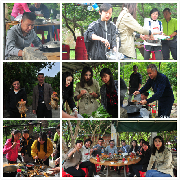 上午十點,隊伍抵達(dá)目的地,接受第一項任務(wù)考驗——“自助野炊”,以小組為單位,相互合作,就地取材,共同制作美味佳肴。每個組分工不同,有的殺雞、宰魚、摘菜,有的燒柴生火,有的炒菜做飯。每個組菜色也不同,有的北方做法偏辣,有的南方做法偏淡。個個忙的不亦樂乎,經(jīng)過了大家的辛勤努力,終于品嘗到了各色美食,有的人這桌吃吃,那桌嘗嘗,歡聲笑語不斷。